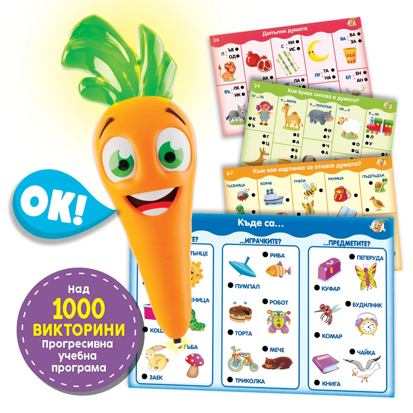 Образователната игра е интерактивна система за учене, която съдържа 1000 въпроса и 94 занимания, предназначени за деца от 3 до 6 години. При правилен отговор писалката светва и издава звук, превръщайки ученето в забавно приключение.